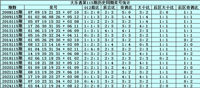 体彩大乐透第2025115期历史同时开奖号码分析: